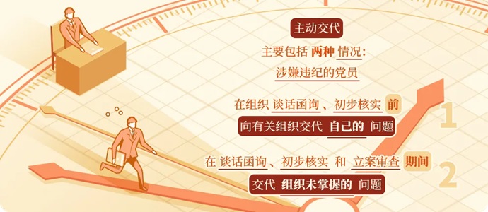 一是涉嫌違紀的黨員在組織談話函詢、初步核實前向有關(guān)組織交代自己的問題。在組織談話函詢、初步核實前向有關(guān)組織交代自己的問題,包括主動交代組織已經(jīng)掌握的問題,也包括交代組織尚未掌握的問題。
