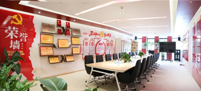 集團黨建活動陣地位于集團辦公樓11樓,占地180㎡,分為黨建文化長廊、黨員活動室、支部會議室三個功能區(qū),集黨員學習教育、組織生活開展、黨建成果展示等功能于一體。其中,黨建文化長廊由黨建引領(lǐng)發(fā)展、傳承紅色精神、筑牢戰(zhàn)斗堡壘、挺膺擔當奮進、構(gòu)建精神文明、建設(shè)廉政文化六個部分組成,圖文并茂的形式讓每一位走過長廊的黨員都能深刻領(lǐng)悟黨建工作的深刻內(nèi)涵。黨員活動室包含了組織架構(gòu)展示、榮譽展示、黨建工作展示、學習區(qū)等內(nèi)容,配備桌椅茶幾等休閑設(shè)施,布置溫馨,氛圍濃厚。