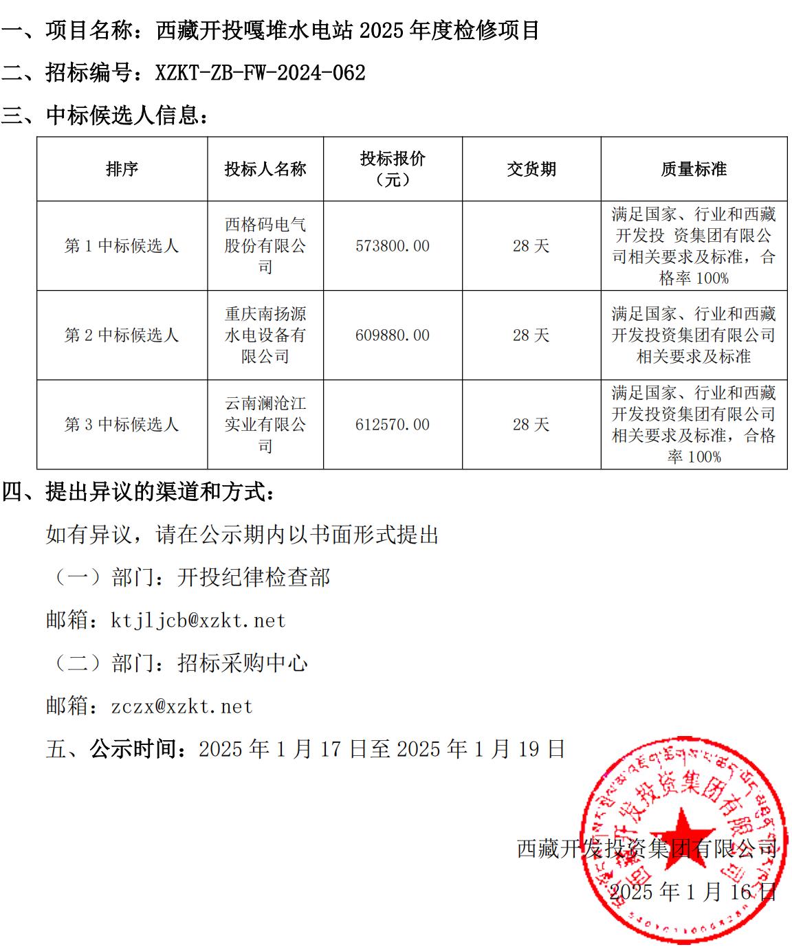中標(biāo)候選人公示